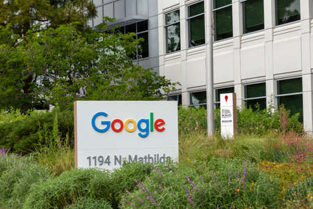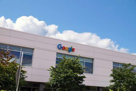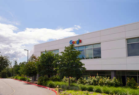 MOUNTAIN VIEW, CA/USA OCTOBER 21, 2018: Google corporate headquarters and logo. Google is an American multinational technology company that specializes in Internet-related services and products.