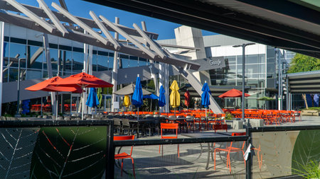 Mountain View, CA, USA - August 15, 2016: dining area for Google employees at Google's headquarters or Googleplex. Google is an multinational corporation specializing in Internet-related services.