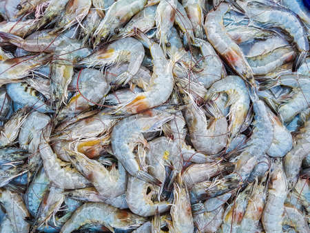 Feresh tiger prawn shrimp sell in fishery market close up seafood
