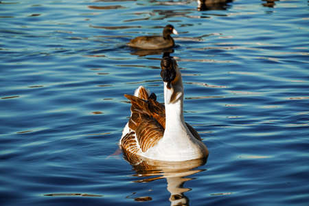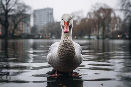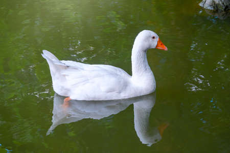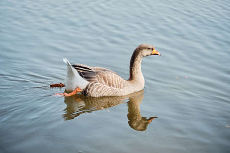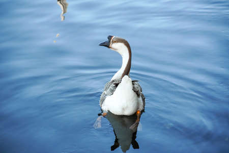 Goose swimming on the lake in the park. Selective focus.