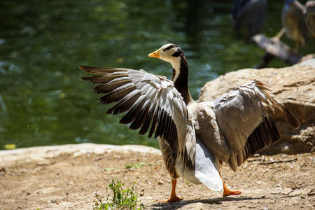 Bar-headed goose spreading its wings