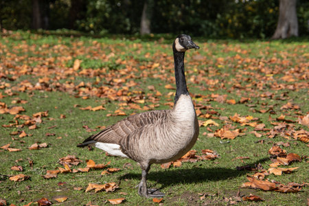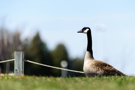close view of Canada Goose on fields in Ontario, Canada