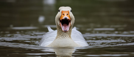 Fierce Angry goose closeup. Humorous group domestical animals with feathers. Generate AI