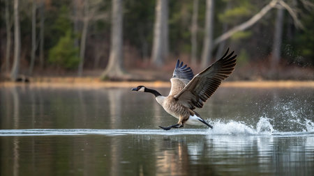 The Elegant Flight of the Canada Goose Over Serene Waters