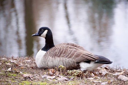 Canadian Goose (Kanada Gans), seen in spring 2016 at a lake (Hoehenfelder See) near Cologne, Germany, Europe.