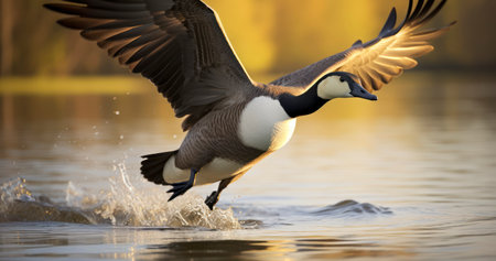 Canada Goose (Branta canadensis) in flight on the lake