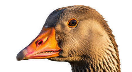 Portrait of a goose on a white background. Close-up.