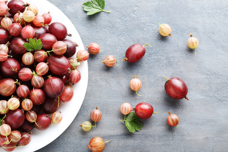 Gooseberries fruit on a grey table