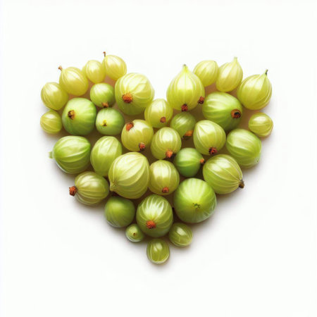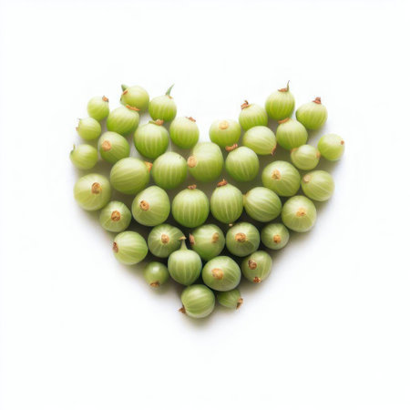 Fresh green gooseberry in heart shape on white background, healthy food