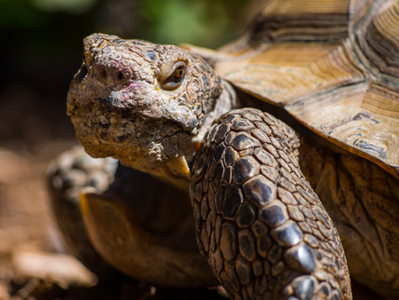 Close up shot of desert tortoise (Gopherus agassizii and Gopherus morafkai), also known as desert turtles, are two species of tortoise. desert tortoise also known as desert turtle turtle