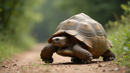 A giant galapagos turtle on a walk