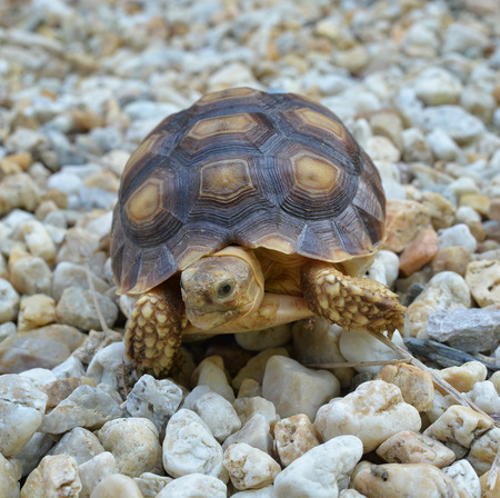 The African spurred tortoise, Centrochelys sulcata, a native species of the Sahara Desert. High quality photo
