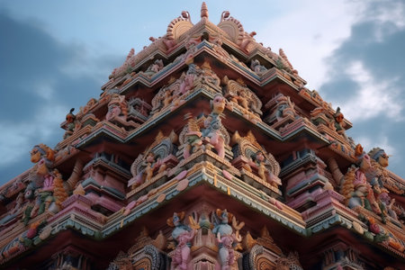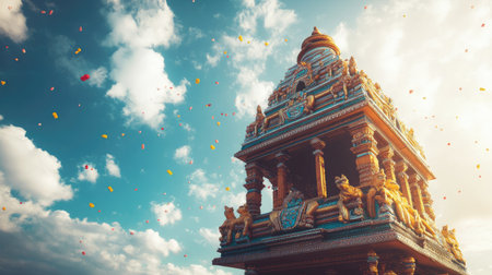 Stunning image of a Hindu temple, showcasing intricate architectural details and vibrant colors against a beautiful sky, inviting spiritual reflection.