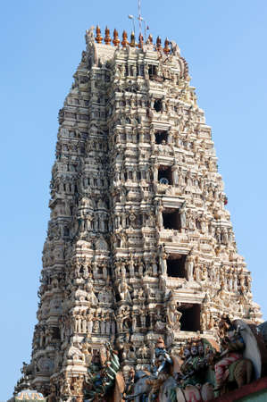 Chennai, India. Close view of religious figures of famous Arulmigu Kapaleeswarar Temple in Chennai the capital of Tamil Nadu, India