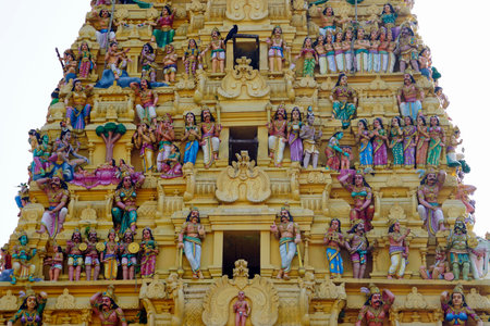 Elements close-up of the Gopura Temple Tower in Karnataka, India.