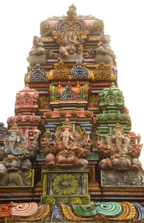 Tower of beautiful hindu temple with a Ganesha (elephant deity) statues isolated on white