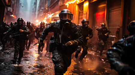 Urban turmoil, street riots civil unrest and societal tensions, chaos and intensity of public protest and demonstration in the heart of the city