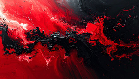 Red and black liquid texture. Ink marble pattern. Fluid art.