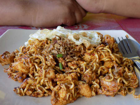 Bakmi Goreng, Indonesian traditional street food, fried noodles cooked with spices typical of Javanese cuisine.