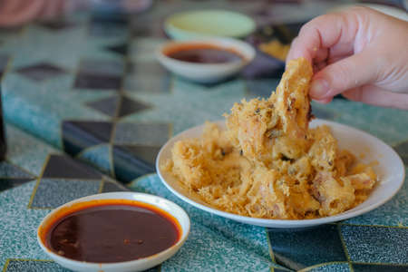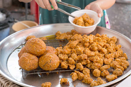 Fried chicken calves at street food Thailand, Instant food.