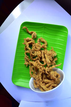 Squid cooked in hot cooking oil, deep fry at the kitchen