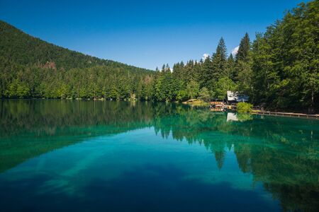 Spring landscape at Lake Fusine on the slopes of the Julian Alps, Tarvisio, Italy