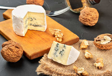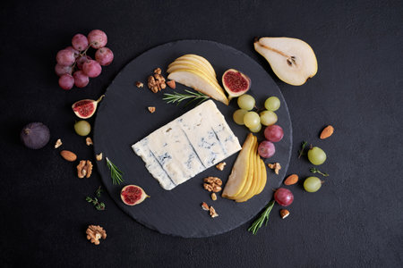 Blue cheese, french appetizer on black slate