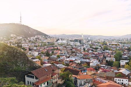 Scenic Capital Georgia Tbilisi old town architecture buildings and sunset view background