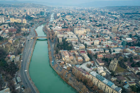 Areal view of Tbilisi City. Beautiful Place to travel. Georgia.