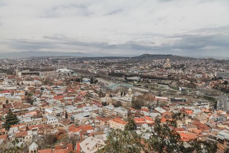 Tbilisi, Georgia - 04.18.2021: Aerial view of Tbilisi from the observation deck