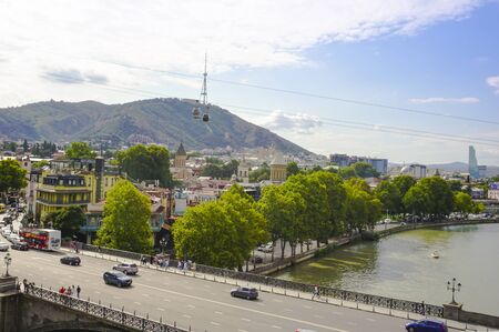 Georgia, Tbilisi - May 8, 2021: Panoramic view of Tbilisi. Capital of Georgia.