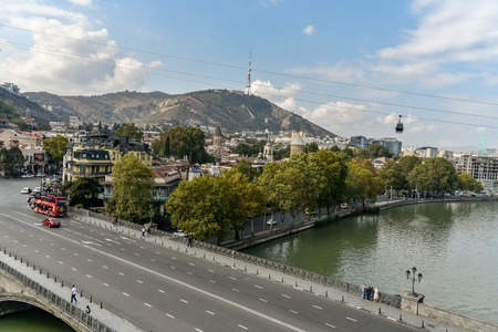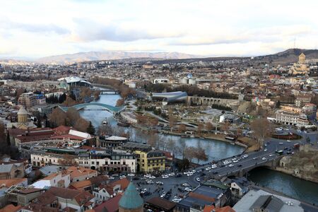 TBILISI, GEORGIA - October 2017: Aerial view of Old Tbilisi.