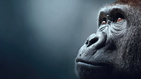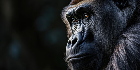 Thoughtful Gorilla Portrait Close-Up on a Dark Background, Blending Animal and Human Emotions