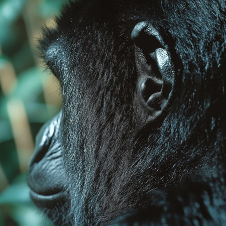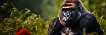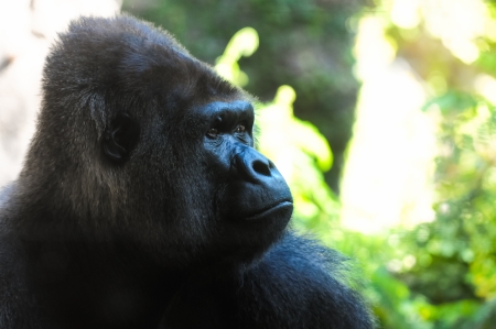 Gorilla profile, jungle background, wildlife conservation