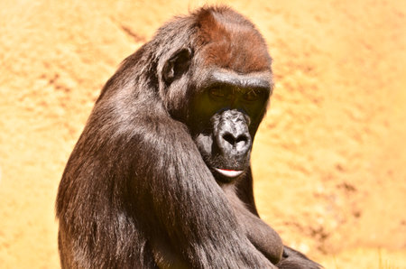 Beautiful Gorilla with a fascinating intelligent expression in the Hellabrunn Zoo in Munich, Germany