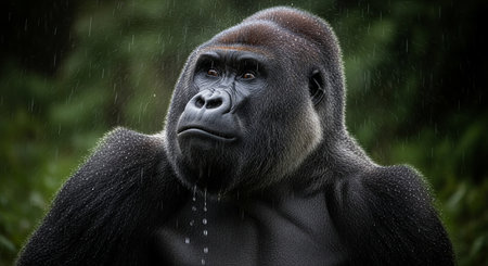 Portrait of a western lowland gorilla, Gorilla gorilla in rain