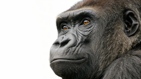 Portrait of a sad gorilla, endangered species and wildlife, studio setting, silverback animal illustration
