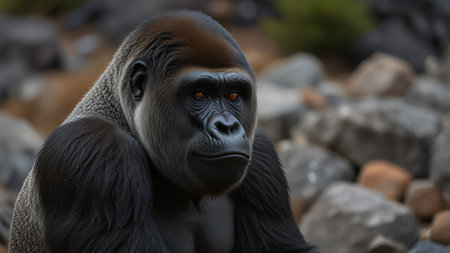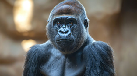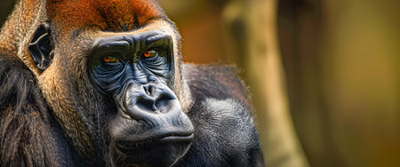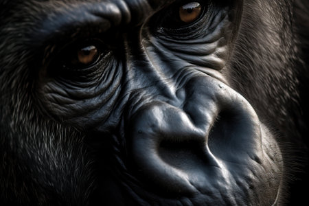 Majestic Gorilla Portrait Showcasing the Primal Power and Captivating Gaze of This Intelligent Primate Closeup Shot of a Powerful