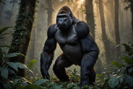 AI Generated. Majestic Gorilla in Serene Jungle Setting