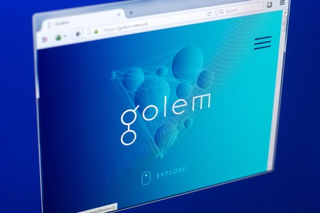 Ryazan, Russia - March 29, 2018 - Homepage of Golem crypto currency on the PC display, web address - golem.network.