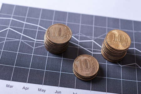 Coins on financial charts. Business and financial concept