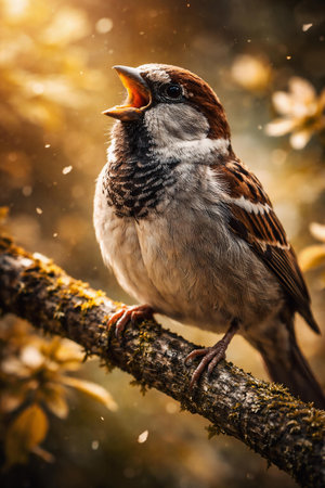 Close up of a sparrow sitting on a branch in the park