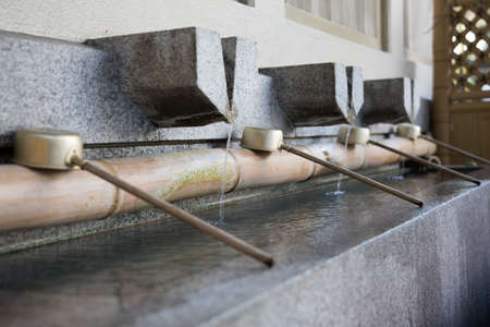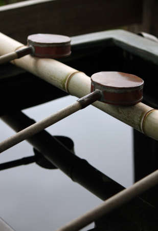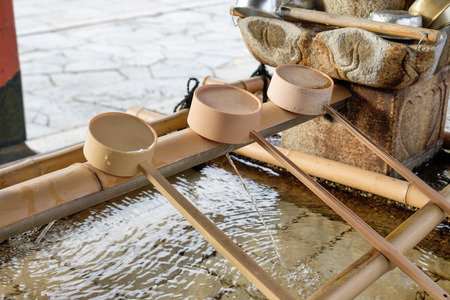 Water ladle and basin for cleansing at shrine in Kyoto, Japan