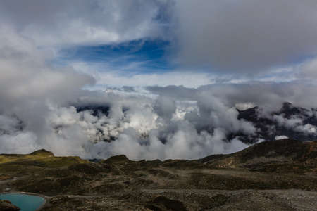 Clouds over the snowcapped mountains, Himalayas, Uttarakhand, India