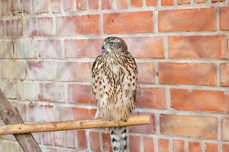 Portrait of a bird of prey in the aviary of the zoo
