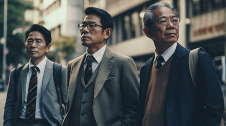 Group of Asian business people walking in the street. Business and urban concept.