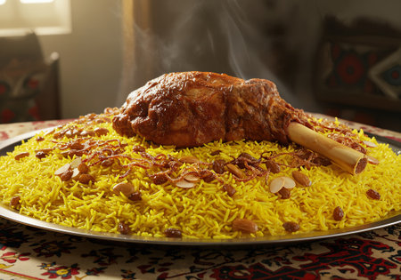 Traditional Arabic lamb mandi or kabsa rice dish