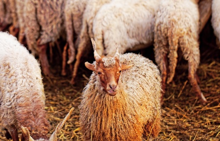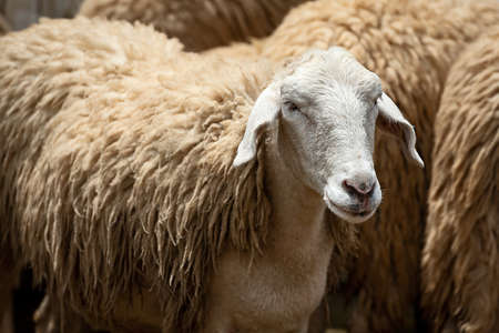 Sheep in a farm. Selective focus with shallow depth of field.