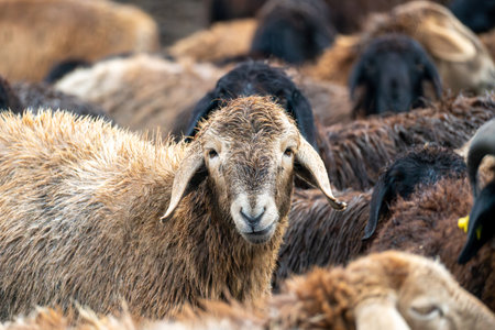 Sheep and lambs for the feast of the lamb that commemorate the Bible and the Koran, where these animals are sacrificed for the religious feast. Concept feast, journey, religious sacrifice.