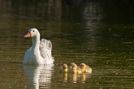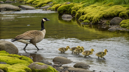Peaceful Country Goose Family Swimming In The River Serene Rural Wildlife